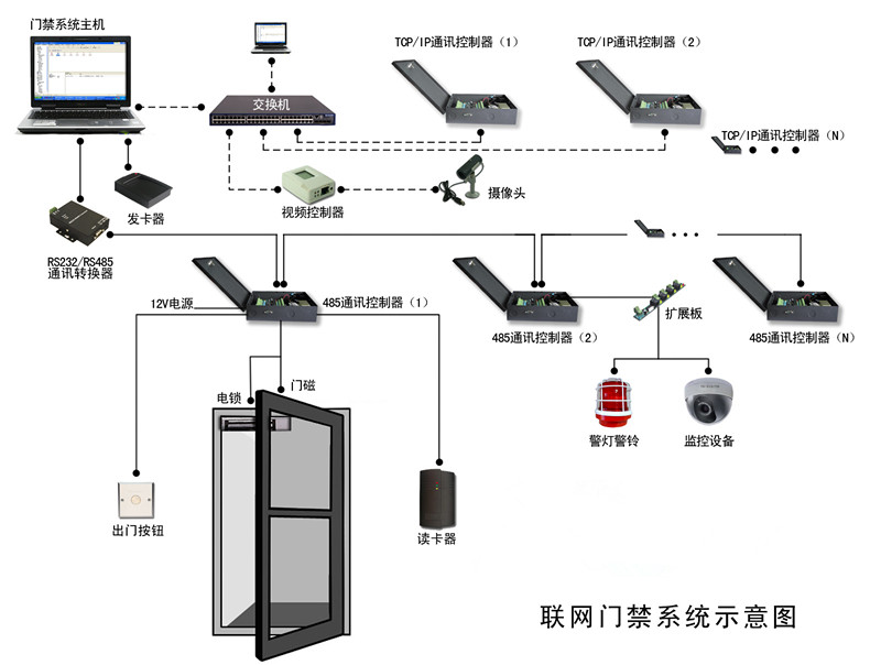 门禁管理系统采用射频技术、由非接触式射频IC卡(卡形式可拓展)、门禁感应式读卡器、门禁控制器、网络通讯装置、管理电脑及配套设备组成集散性网络控制系统。现场控制器即可联网运行,也可脱机操作,主控电脑可实时监控,也可按管理工作需要定期传递、管理数据。